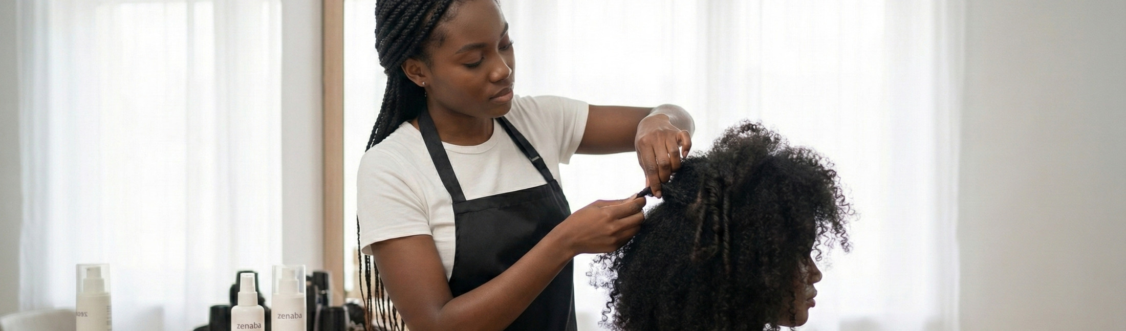 Since 2006, Zenaba has been reinventing afro hairstyling, making it simple, accessible and hassle-free. Coily, curly, locked or straight: every texture deserves expertise.